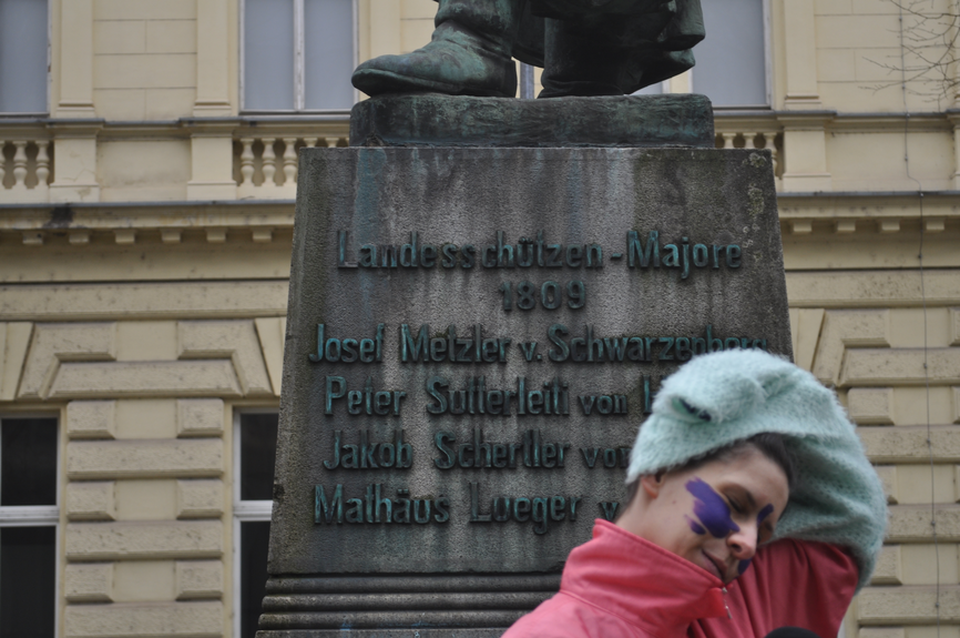 I do not know, who Dr. Anton Schneider was. I never heard something about him in school. I doubt that many people know who he was. I could test that on a day with more by-passers. He is an old white, chubby man on a pedestal. I didn’t really notice him before I did my project about monuments. It seems as if he has been left here, a relic of history, in which no one is interested much nowadays. He is still there on the pedestal, looking down on me. I don’t like what he stands for. He stands for (old) men who rule and command. He reminds me of chubby elderly patriarchs who do not take me serious, watch me with lewdly gazes, interrupt me, do not listen to me and talk loudly. We still have politicians like him. They do not command soldiers to go to war (not in Austria), but they do everything to keep the old, conservative, catholic, patriarchal system going. Do I do him (Anton) wrong, judging him on his looks like that? It is not only how he looks, but the posture and the fact, that he stands on a pedestal. He lived around 1800, so I guess he didn’t take women seriously, because no one did in public live (women were not part of the political public sphere).