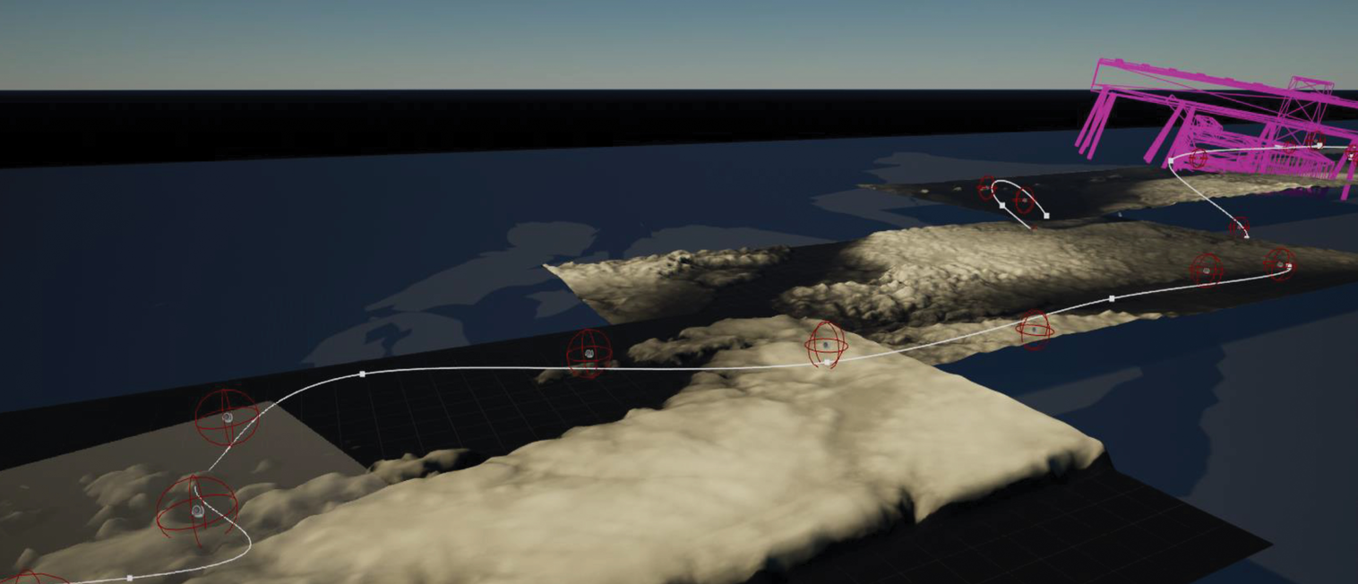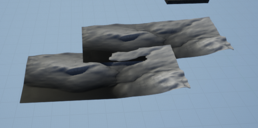 We created a digital environment that specifically draws on the landscape of our vast, relatively empty country using recorded geographic data from the site Open Topography. By capturing height measurements recorded in grayscale images—white representing the highest points on the landscape and black the lowest—we were able to import both the images and the data into the VR game engine, UE. By using the grayscale images, we could recreate chunks of Canadian terrain within the VR world.