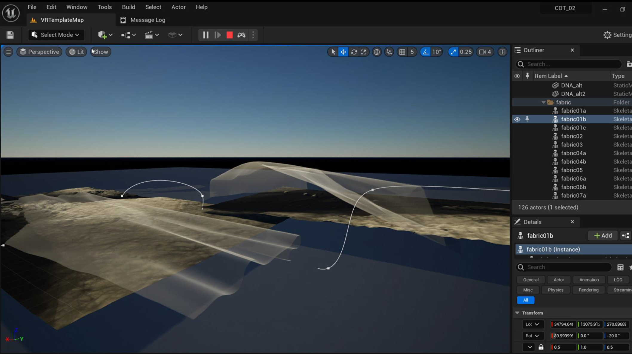 Intuitively implementing a process of figuring out how UE5 works, we wrote down the steps as a kind of protocol. Editing the protocols constantly, they became unfinished learning tools. We developed 'Packaging' (from Slow Guy video) and 'Light & Fog' (from Sensei tutorial video, behind paywall) but one protocol that was really meaningful to our learning experience was Moving Fabric (from the Flag video).
