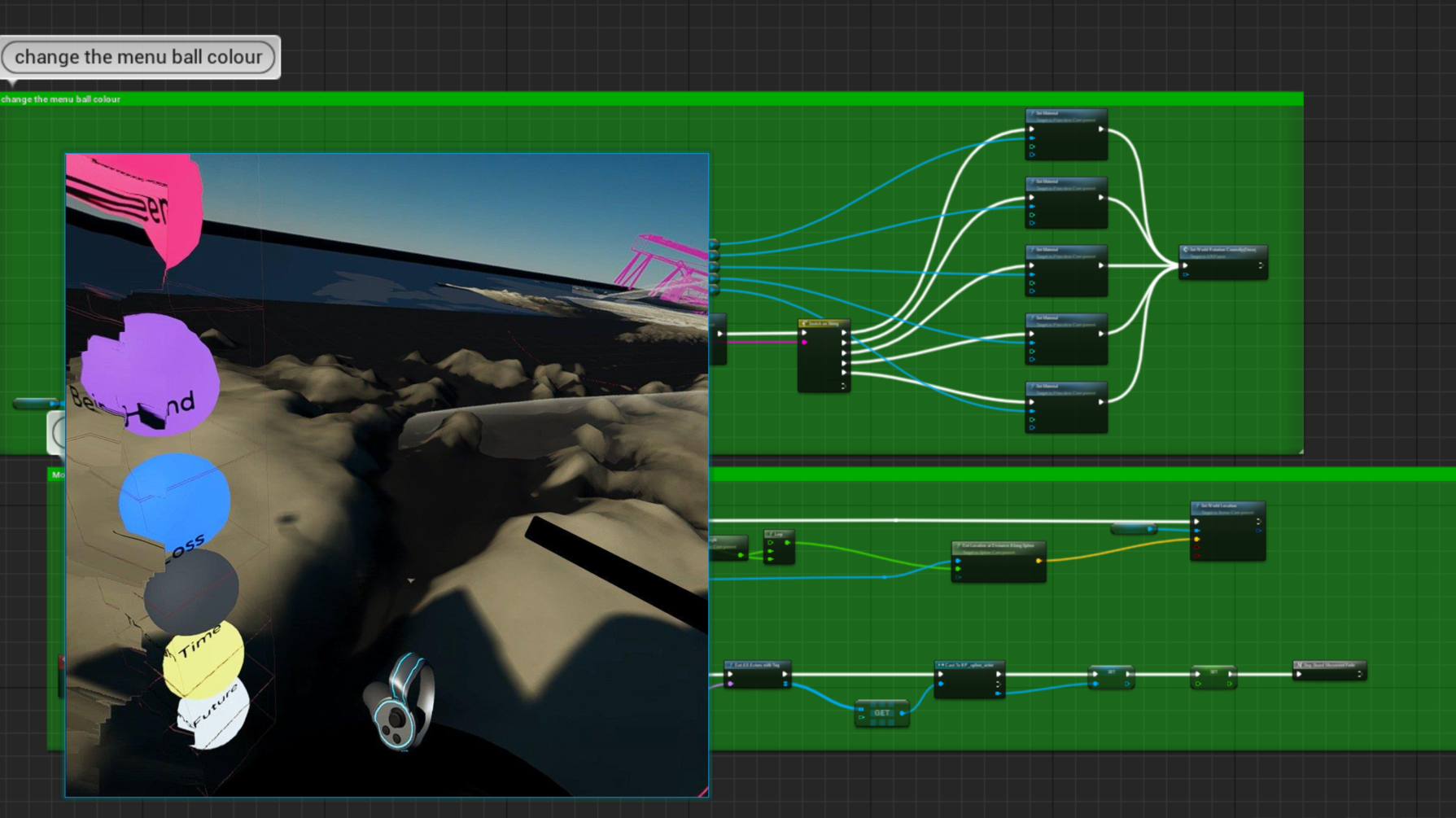 In VR we are able to go beyond the surface of the landscape. Rather than arriving at the end of a virtual world, it unfolds in front of you. This unfolding/folding process led us to start building underneath the landscape and inspired the addition of a DNA helix structure which could hint at complexity and roots.