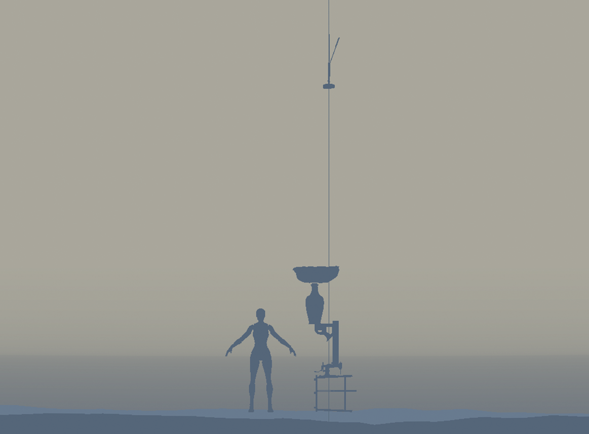 When we put on the headset to look at the world we were creating, we couldn’t find the mannequins. But we did see odd artefacts on the landscape and falling through the air. We hadn’t realized that the wind that was blowing our fabric was also affecting the mannequins. Much to our dismay, their bodies had been twisted and contorted by the wind. The work already had an uncanny, dystopian aura to begin with, but with the addition of mutilated bodies it was pushed over the edge into horror—not what we were going for. The mangled bodies did not make it into the final version.