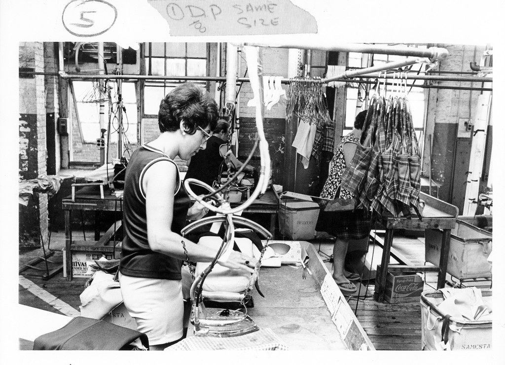 TC—You need to use your whole body when ironing, specifically with the heavy and industrial irons. Once skilled at it, you act on instinct and the manipulation of a garment on the plank takes on a rhythm, becoming a sort of unconscious dance, rigid and controlled, but with gracious maneuvers. It is captivating how everyone builds their own steps and ironing routine.