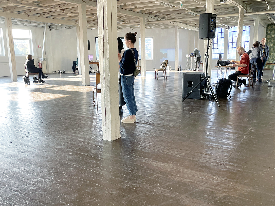 They were recorded separately on a multitrack device, and they were also played back towards the end of the workshop blending in with the sounds from all other activities in the same room.