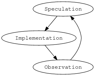 On a more general note, the compositional approach behind Tropos is characterized by a special attention towards the complex ecology of relations between compositional thought, aesthetic ideas and their material implementation. A small piece of software is what allows Tropos to relate non-standard synthesis technique with the live microphone input. This is the result of a form of iterative software experimentation, in which the relation between aesthetic speculation, algorithmic formulation, and the emerging aesthetic artefact constantly inform each other, in an almost inextricable compound that could be (very) roughly simplified as a single feedback loop (side Figure). In composing Tropos, special attention was given to this ecology of relations, and in particular to moments of aesthetic individuation: moments in which the direct exposure to the aesthetic qualities that emerge out of the experimental process redirect one's own aesthetic direction and reflection.