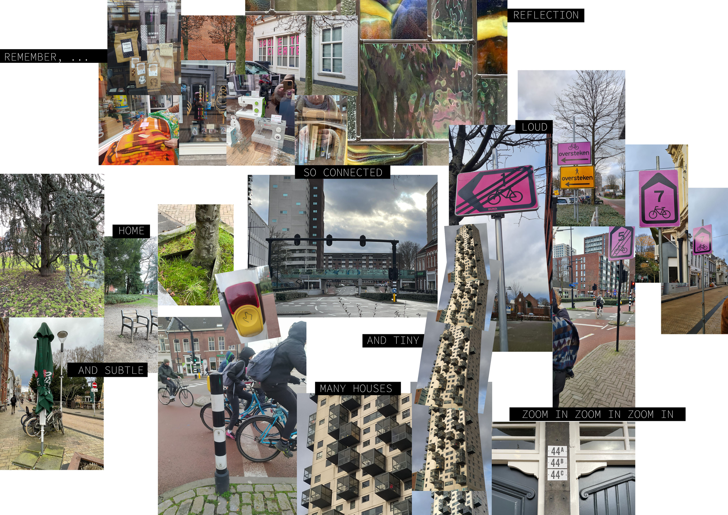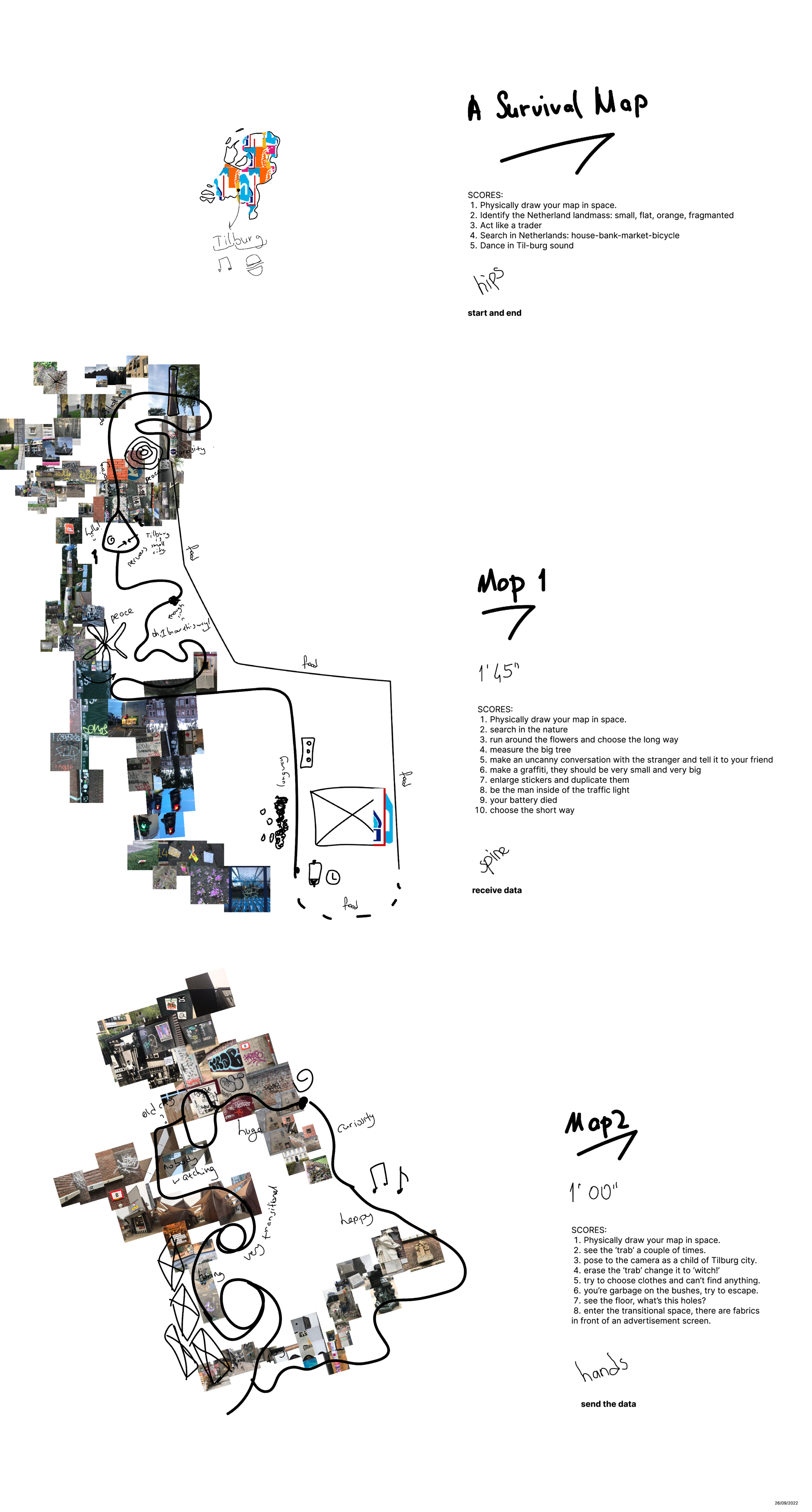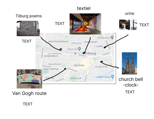 - writing scores in the studio- space, place, and object relationship of participants, image observed on mental maps; also make a connection from my (subject who is observing and analysing the work of art) knowledge about Tilburg and image-photo analyze SOLO, OBSERVATION-REFLECTION