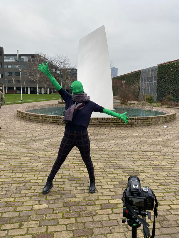 - video editing-greenscreen costume: overlaying the image documentation SOLO, OBSERVATION OF VIDEO, AND REFLECTION