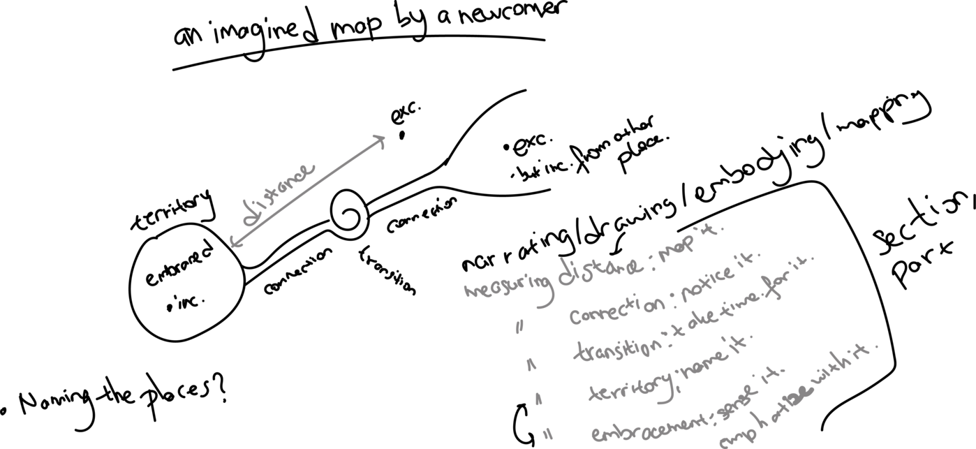 - walking-calling memories and body knowledge, observation, play, trying new ways of engaging, playful analyses (more flexible) DOING, PARTICIPANTS. TO DO: DIVIDE THE THINGS YOU WANT TO DO!