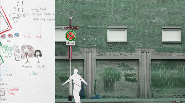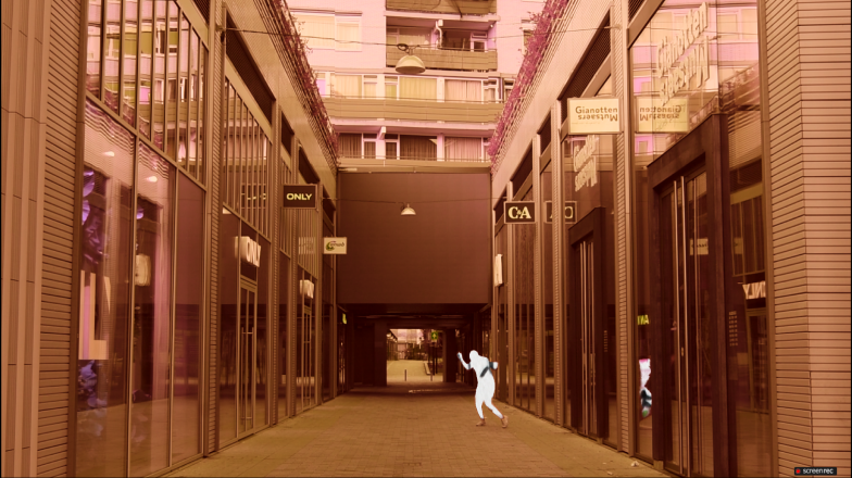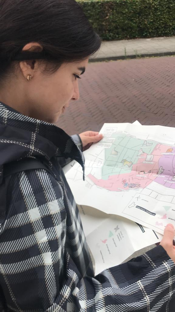 After deploying QR codes, I explored the envisioned use of these spaces by international students. Dancing in three areas, my body unveiled the imaginative context through movement and drawings, creating a new narrative over the designated color. Acting as an alternative city tour guide, the moving body connects imaginary landmarks, transcending time, culture, and Tilburg's public spaces.