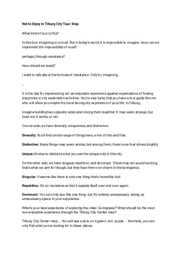 ‘Not to enjoy Tilburg’ city map and city tour designed around these landmarks provide an unexpected experience, essentially the opposite of what is anticipated from a city tour for individuals who are connected with Tilburg.
