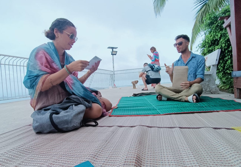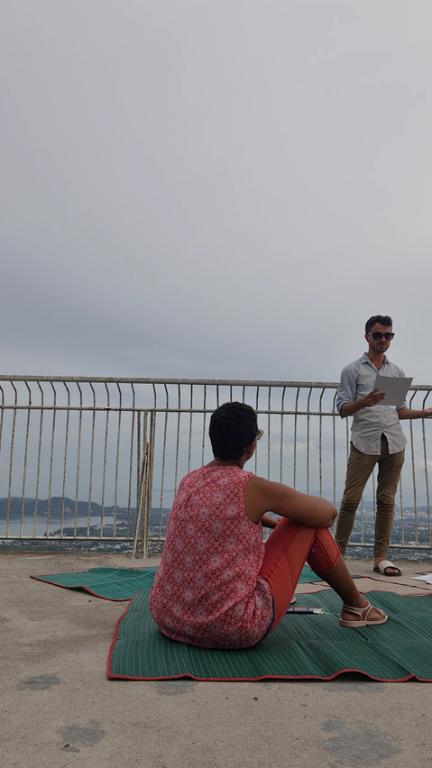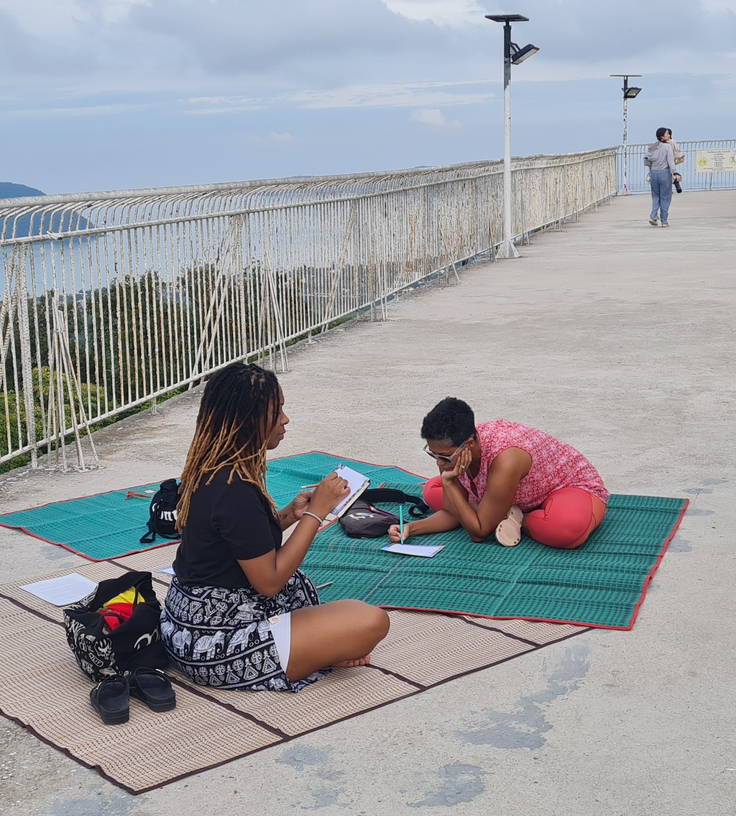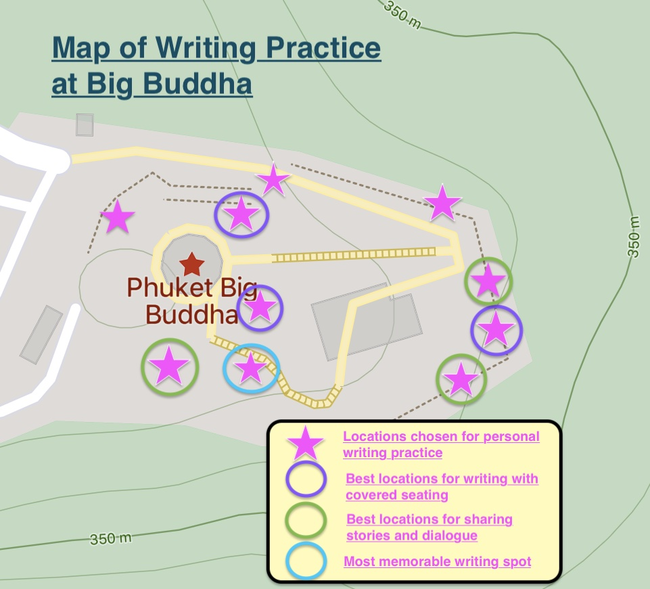 I wanted to make sure I had enough distance as a researcher to observe reactions or interactions with the storytelling installed at the viewpoint area so I contacted other writers and performers to try out my writing practice and assist me as performers of my stories. The stories I had been writing in relation to the Big Buddha viewpoint would be shared by storytellers installed in the space. These installations would be durational performances, ending after audience members engage in the writing and sharing practice. This engagement would take place unannounced, to help create a magical and unexpected experience for visitors. I began by introducing my collaborators to my writing practice and shared the stories I was considering for the installations.