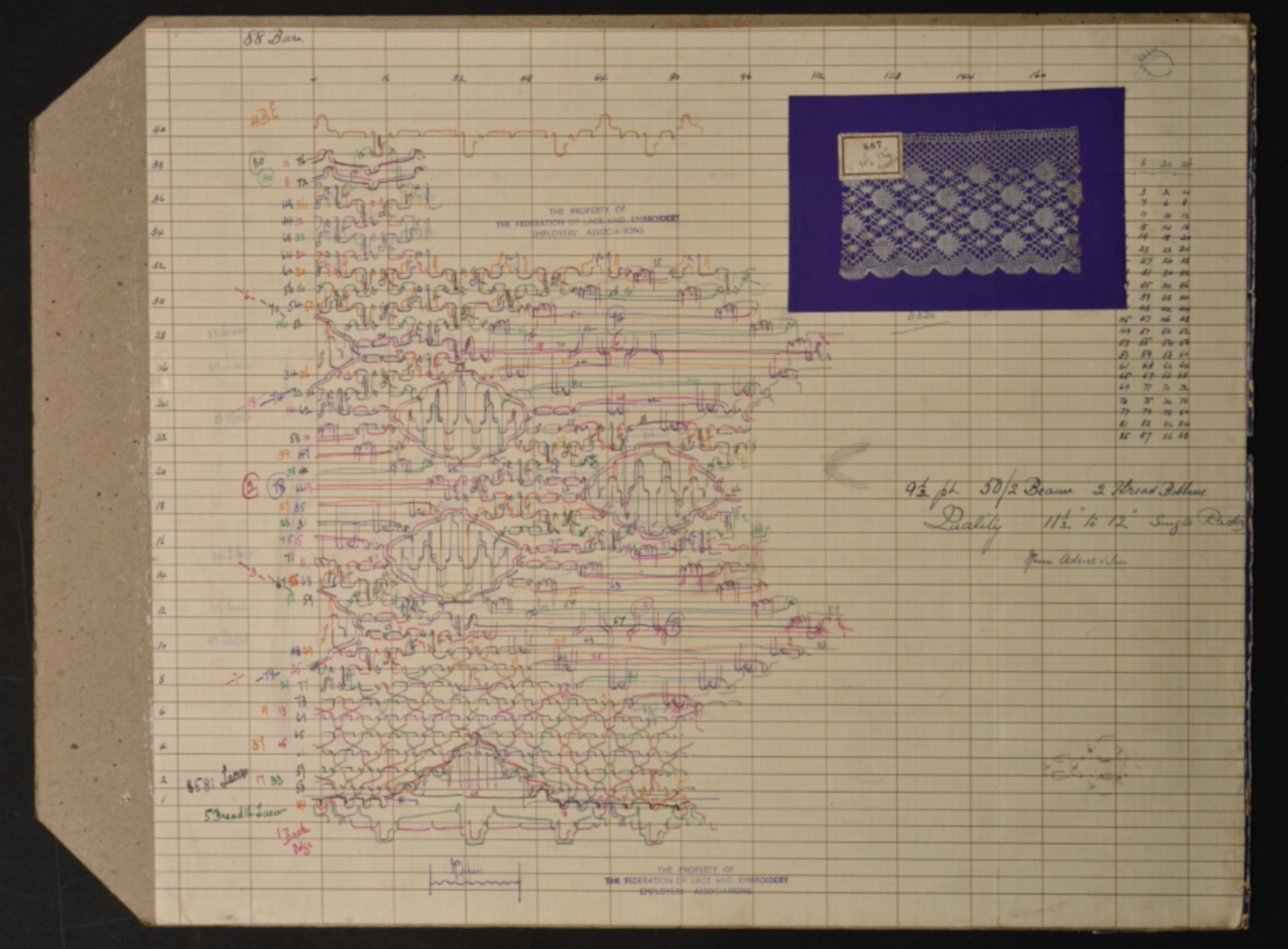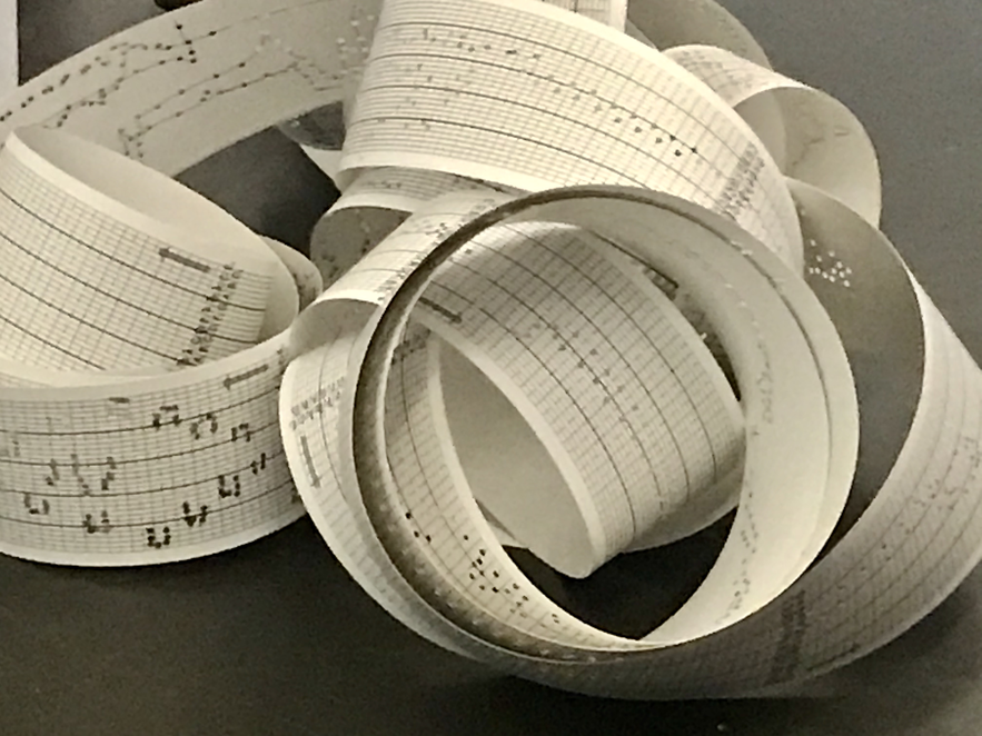 Score was created from an iterative process of transposing the drawn lace lines within a historical lace draft onto a programmable music box punch card. Key ideas of transposing, encoding and re-encoding were explored through first ‘naively’ transcribing the original data of the lace patterns into lines before inscribing them into a continuous line on the punch-cards. Talking about making Score, Maier refers to processes of appropriation, copying and repetition as well as the kind of slow, immersive looking of ‘the translator’s gaze’ (Campbell and Vidal, 2019). Score saw Maier producing several re-drawings of the historical lace draft, which she describes with the term ‘unrepetition, … a kind of iterative variance, something that is the same, but is not exactly the same’. For her, translation offers an opportunity to investigate one material method through another, here exploring lace through line drawing, sound and performance. The translational process of removing material from its original context into another allows her to understand it in a different manner, eventually enabling her to ‘get to the core of the material’ even if only to realise that 'the core shifts'.