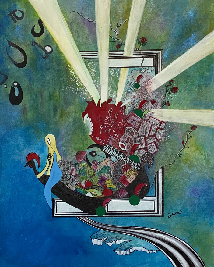 Gouache, Acrylic, and Calligraphy Ink on Canvas, triptych, 40.64cm x 50.8cm each
