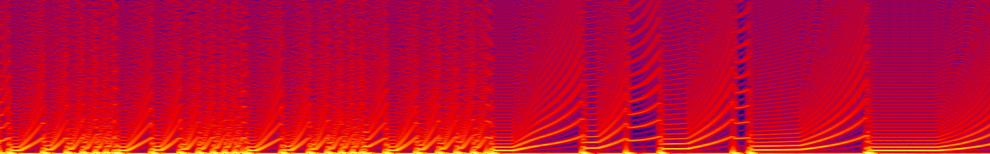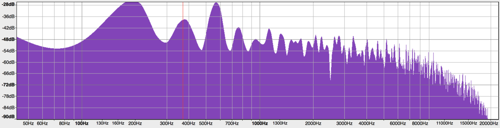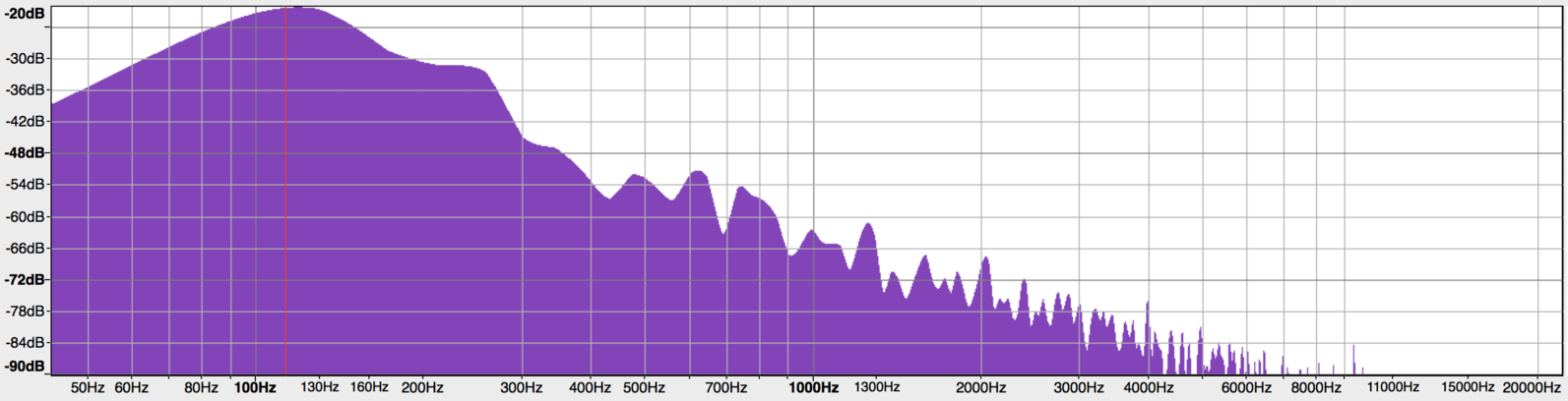 Zooming in even further, just on this winding up sound, it becomes clear that there are some additional processes at play. The fundamental frequency ramps up from roughly 113Hz to 192Hz, but as the waveform progresses, its timbral complexity increases as well.