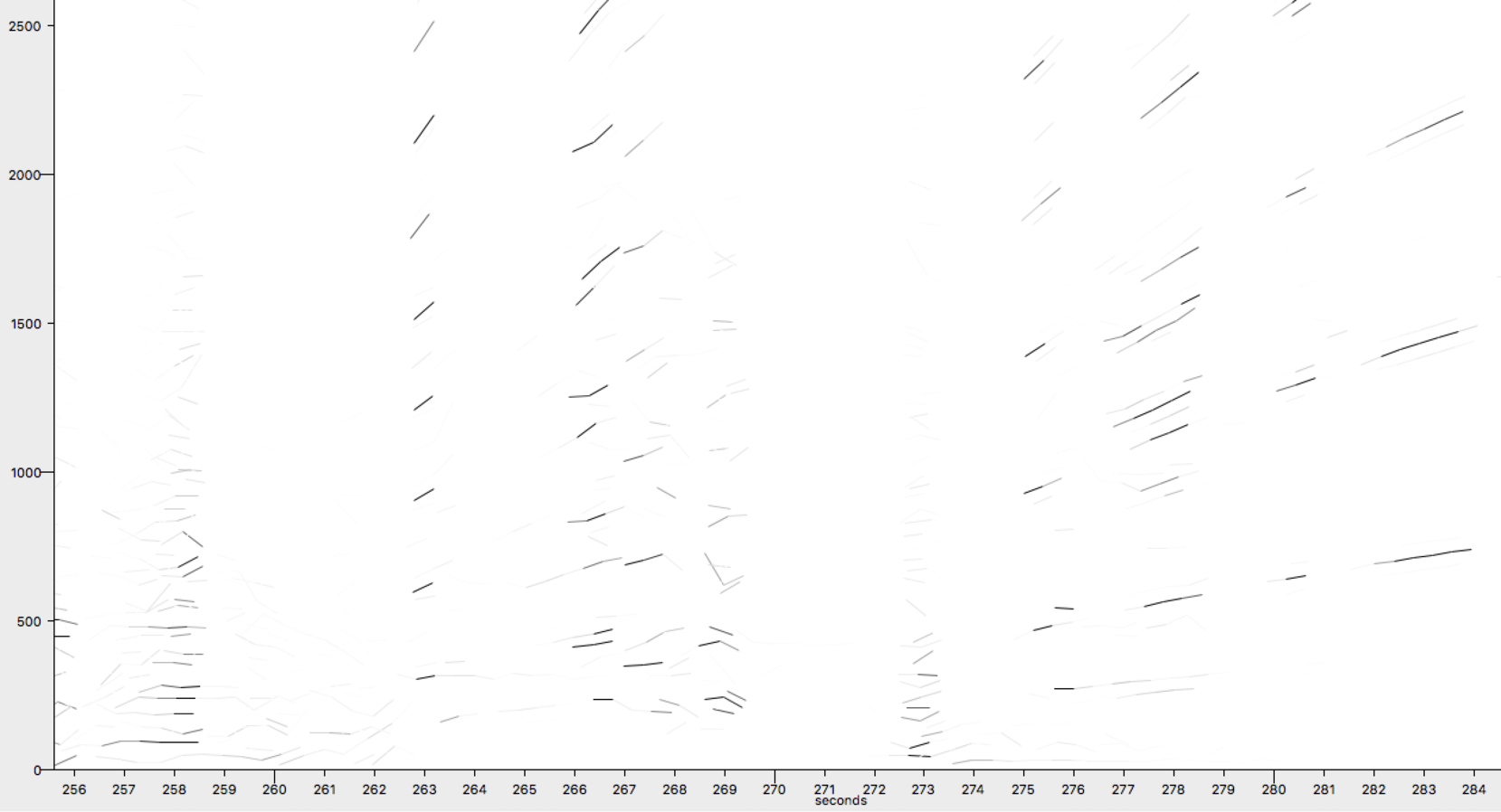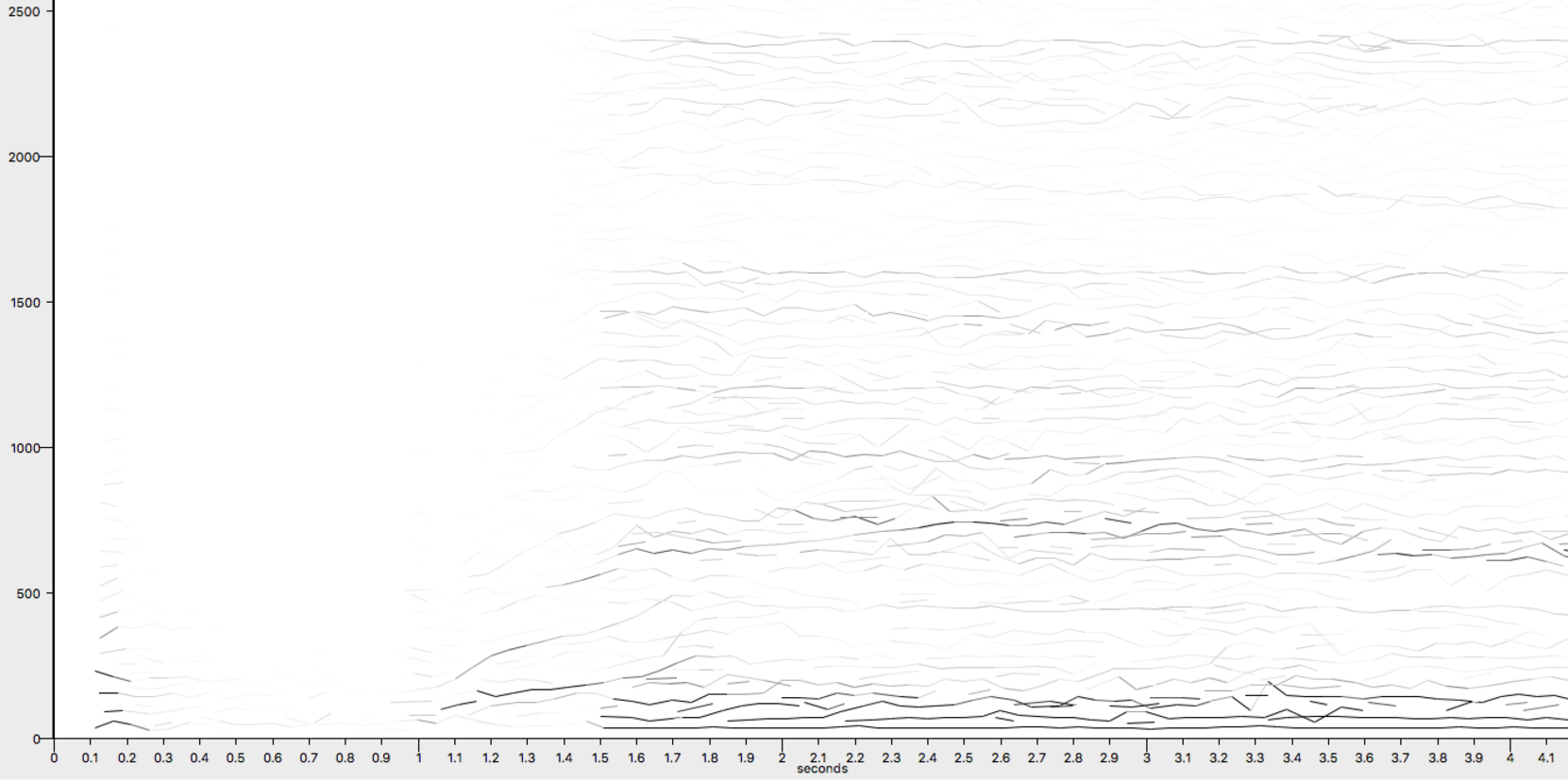 This approach, of obtaining data through audio analysis, used to influence the parameter space of the code, is used on several occasions throughout the research.
