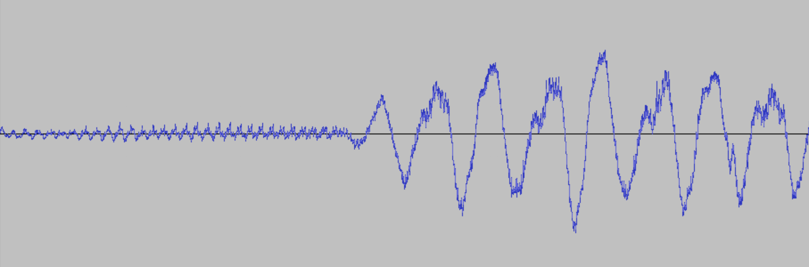 As a performance begins, the music information retrieval section of the code undergoes a rapid change from analyzing silence to sonic input. This rapid change causes a swift change in the parameter space of the granular delays and filters, which can sometimes lead to a percussive sound. As the volume increases, the oscillators begin to entangle. For a fraction of a second, the instrument produces a sound as if it is winding up. The frequency rapidly sweeps up.
