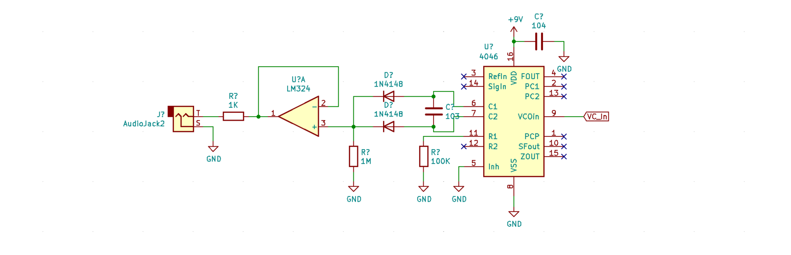 The OMSynth enables the user to tinker around with circuitry and playfully explore the possibilities of creating analog synthesized sounds using some very basic integrated circuits and a handful of electronic components. Furthermore, by adding only a few jumper wires, the flow of electricity can be routed from outputs back into their corresponding inputs, quickly turning simple oscillators into chaotic processes by establishing nonlinear feedback loops. One of the easiest oscillators to build is a square wave oscillator, requiring only three components and a few jumper wires on the OMSynth. The pulse wave consists of an oscillation between only two different states, high or low.