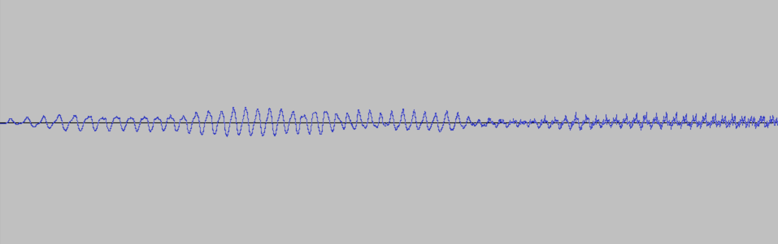 This sense of "settling into" is an important feature of the instrument. In the closeup of the waveform the three elements are clearly distinguishable. The popping sound (from 0.1 to 0.3 seconds) is most likely an artifact of the digital processing element of the setup.