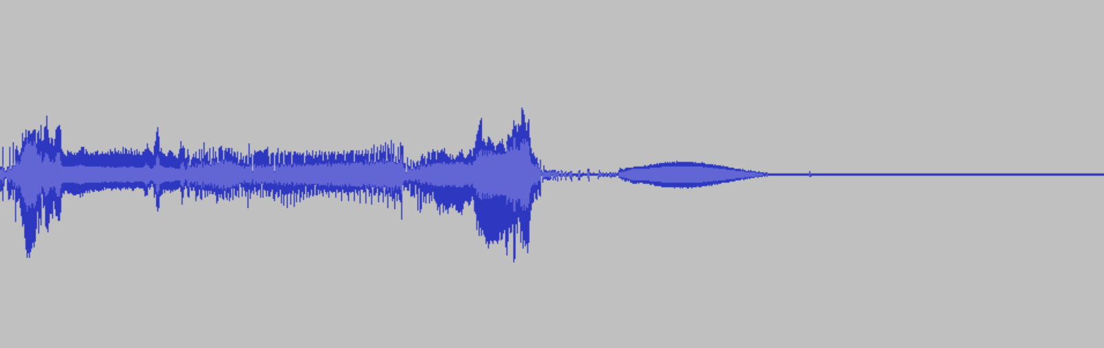 The ending of the piece is abrupt, cutting out the sound of the analog synthesizer and letting the digital manipulations sound out. I often use this type of ending when performing with chaotic instruments, influencing them toward a tipping point, increasing the intensity, only to suddenly pull the plug. The chaotic processes that drive the instrument have a tendency to keep producing variety, and if left unchecked, performances could last many hours. Ending a performance is therefore an important artistic decision. In this particular recording, the final minutes of the piece are rather hectic. First, there is a drone, consisting of two frequencies, roughly a minor third apart. This interval changes to roughly a major second, and eventually bounces back and forth between these modalities. This movement is interrupted by four short bursts, acting as a quote from earlier in the piece. Then the piece launches into its last unstable phrase as is pictured above. These last sounds convey most of the sonic behaviors that are present in the whole piece, condensed down to about seventeen seconds. In a way, it points to the notion of self-similarity. All of the sounds and all of the modulations that happen within the piece are in some way related to the sawtooth waveform. Zooming in even further confirms this. While examining just a single oscillation, the spikey and whimsical movements within the waveform are a testament of the nonlinear ways in which the oscillators are affecting one another.