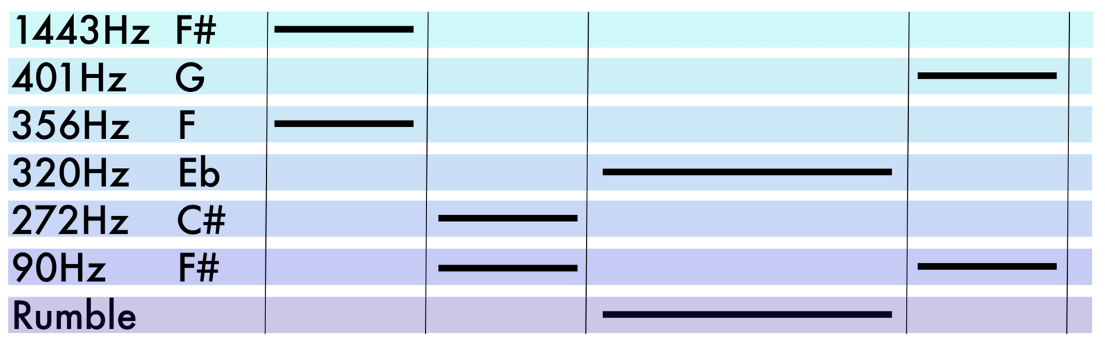 The third "chord" in the progression, colored yellow in the spectral analysis above, proves difficult to replicate. There is a prominent Eb note from the saxophone, mostly supported by a low and rumbling electronic timbre. It functions as a layer of suspense, eventually resolving back to the F# that ends the sequence.