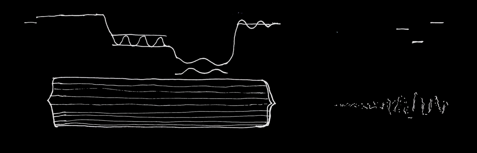 A sketch with rough indications of the sonic movements of the saxophone (above) and the electronics (below).