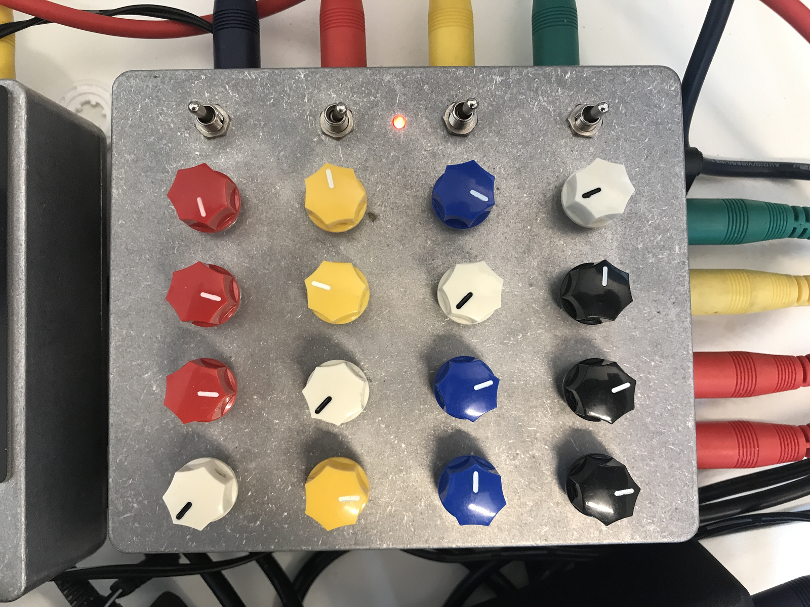 After a long period of incremental changes and refinements, the pedal started to take shape. The first few versions had clear issues, resulting in a limited range of sounds. These early steps in the process were relatively easy to work through. Often it was quite clear what needed to be done to be able to proceed. After this first phase the pedal was fully functional, and the development shifted gears to refine the design to fit within the context of a larger live electronics setup. The granular SuperCollider patch, described above, was extended to include live input, expanding the sonic vocabulary of the STATES pedal.