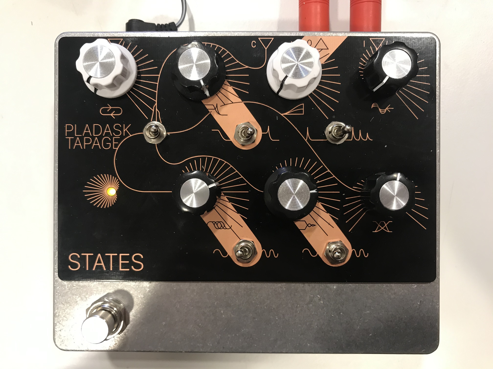 STATES is a guitar pedal, developed in collaboration with Pladask Elektrisk, combining ring modulation, phasing, and a filter, inside a feedback loop. On its own, it is able to self-oscillate and produce almost flute-like tones that roughly arpeggiate along parts of the harmonic spectrum. When placed in a network, these tones interfere with one another, resulting in much more complex sonic behaviors. The guitar pedal is the basis for a live electronics setup that combines several STATES pedals with other hardware and software manipulations. Before going deeper into the specifics, some context may be necessary. There is a backstory to the States instrument that is tied to the trajectory of my explorations into chaotic music over the past decade. The beginning can be traced back to a short residency at STEIM in January 2013. During this residency, my focus was mainly to experiment with no-input mixing, and to work toward a setup that could be used in live performances. The project blog has the following entry on the second day of the residency: