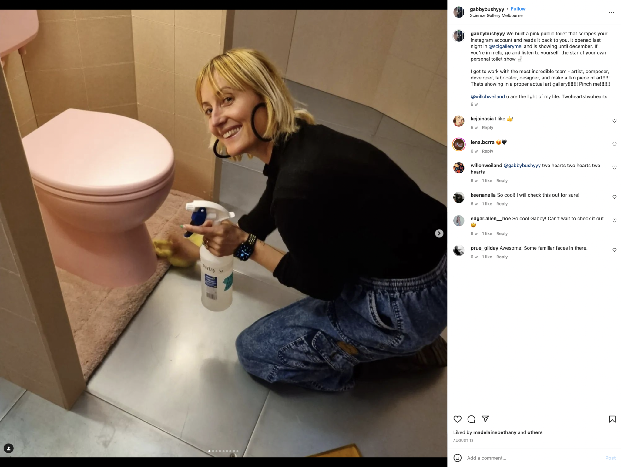 In creating Scrape Elegy, we spent much time considering what people wrote and shared via their posts and the selves they constructed over the course of their (Instagram) lifetime — how they created and curated their personal swarm. We looked to works such as Amalia Ulman’s Excellences & Perfections (Kerr 2017), a six-month Instagram performance of self-discovery exposing the gap between online self-representation and reality. By asking our audience to review their own social media posts through another voice, we hoped to similarly unveil the fractures between these multiple constructed selves.