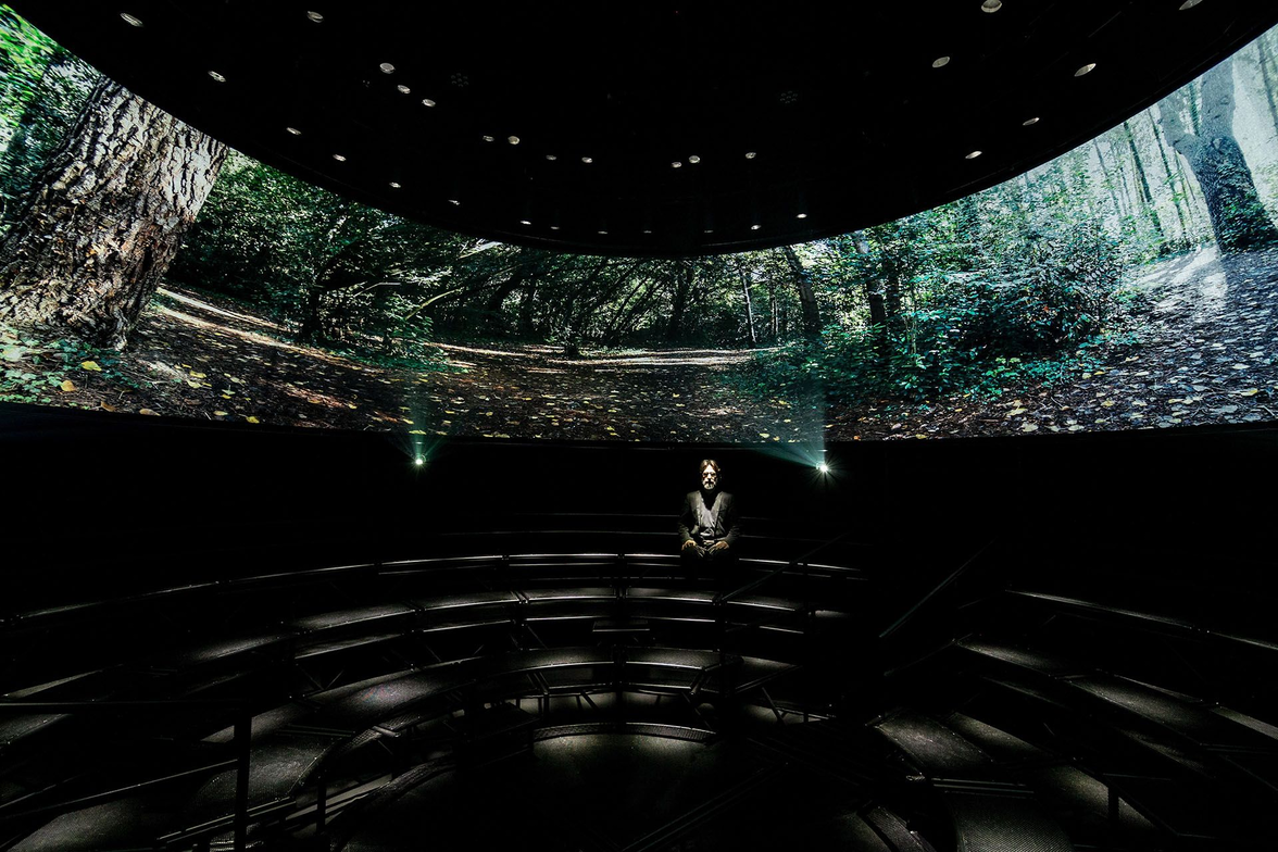 Monacchi, interested in the audio/visual combination of this idea, presents it in a more musical context through his in-depth field recordings and visualizations. Monacchi works to present the "aesthetic significance of typology/frequency/temporal sonic niches and their complex interactions within these untouched, therefore highly coordinated, natural systems" (Monacchi 2013, pg. 2). Through visual immersion of the sounds an audience hears, Monacchi can present an ecosystem's sonic fingerprint and also allow a performer to fill any spectrum that is available, thus creating a musical performance unique to that environment (Ibid). Pictured below is Monacchi's Sonosphere, part of his international project to raise awareness for the 'sixth mass extinction' we currently are in.