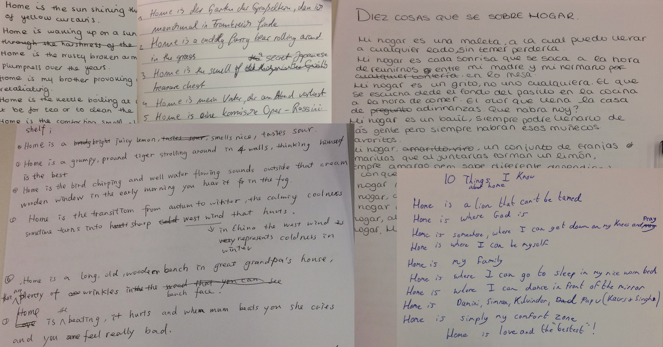 Notions of “home” in Europe are becoming more fluid, being challenged and reshaped by unprecedented migration. Our collaborative project Talking Transformations: Home on the Move explored the impact of migration on these notions by employing creative writing, creative translation, intersemiotic translation into film-art and public workshops.