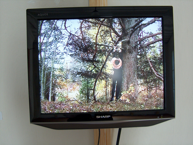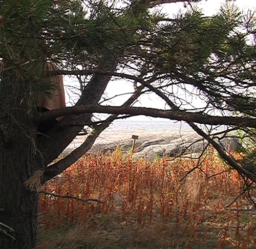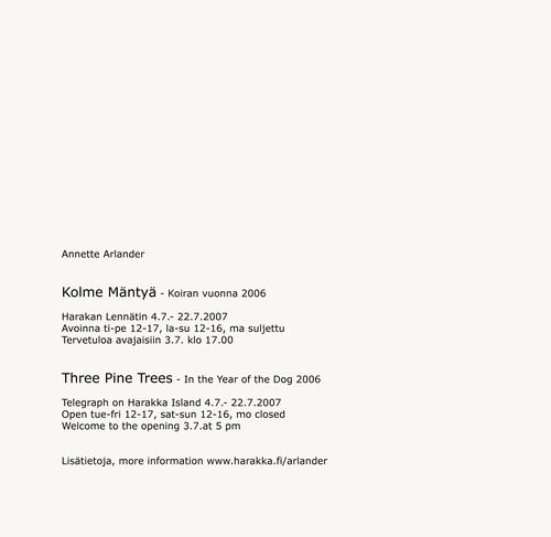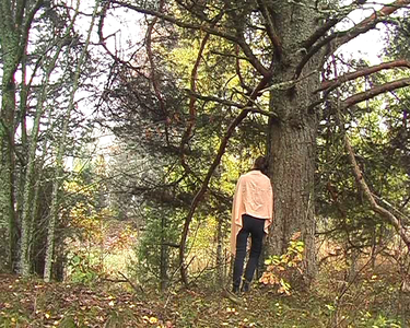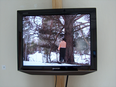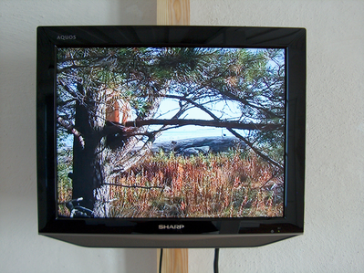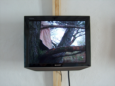 I sit with a yellowish scarf on my shoulders in a pine tree on Southern Harakka island 13 times at Halloween time, from 20.10 at 12.15 – 21.10. at 12.15 2006, with two-hour intervals.