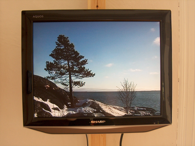Installation for two projectors or monitors, part 1 to the left, part 2 to the right.