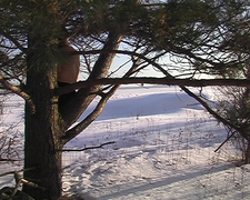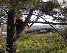 The Pine Revisited (16 min. 36 sec.) combines the record of a revisit on 28 February 2018 to the site where the Year of the Dog - Sitting in a Tree (2007) and Day and Night of the Dog (2007) were performed during the year 2006, with those two videos inserted into it. It was presented as part of "Regurgitated perspectives" with How To Do Things With Performance -project at the 9th SAR International Conference on Artistic Research, University of Plymouth, April 11th-13th, 2018.