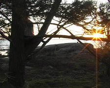 I sit with a yellowish scarf on my shoulders in a pine tree on Southern Harakka island 54 times, once a week 7.1.2006 – 11.2.2007.