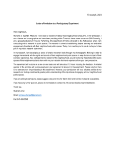 Invitation Letter to Residents in my neighbourhood. I walked door to door to drop this letter to all 58 households in my neighbourhood.