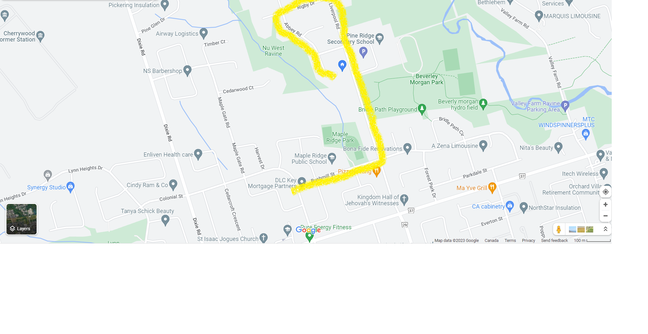 - Investigating social behaviours on the streets of my neighbourhood on March 6 between 10:30am and 11:30am. Zero to very minimal activity within the neighbourhood. The Pine Ridge school lunch hour starts at 10:45am. A lot of students walk to the small plaza at Liverpool Road and Bushmill to buy lunch. Their activity turns the silent and only traffic dominated street into a social space for that hour between 10:45 and 11:45am as they walk with their freinds, chatting, laughing, socializing on the street. They also break the rules of the street as they cross the street where they are not supposed to be crossing.