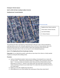 A friend and a resident from Toronto West Bloordale neighbourhood took part. She is a 'deep listening' practitioner and was interested in exploring only the auditory scores.