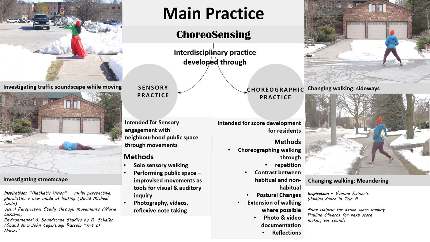 Sensory practice - Choreographic practice (for score development) - Participatory practice - Tactical Urbanism practice