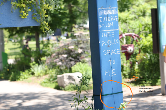 It seems the unannounced urban interventions draw more participation from the public than the organized participatory events. The missing wooden plaque from the park, the erasure of text from the street post on the Third Street reflect that these interventions do catch people's attention. Perhaps their absurdity, in the sense that they are not expected to be there, makes people express their voices/opinions about these interventions through different interaction actions.