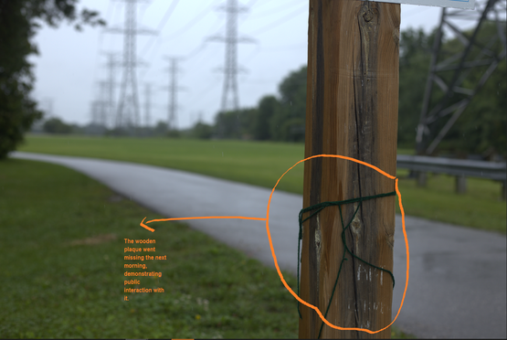 Image 46-47: Proof of public interaction with the intervention. The plaque went missing the next morning.