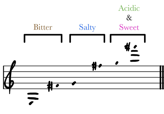 Once this was determined, I proceeded to compose the musical material corresponding to each basic taste: