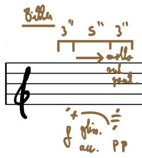 - ‘Salty’ musical material: the “high degree of discontinuity” would this time be achieved by a quick accelerando and ritardando, or vice versa, over a short staccato/pizzicato utterance that would match the required articulation.