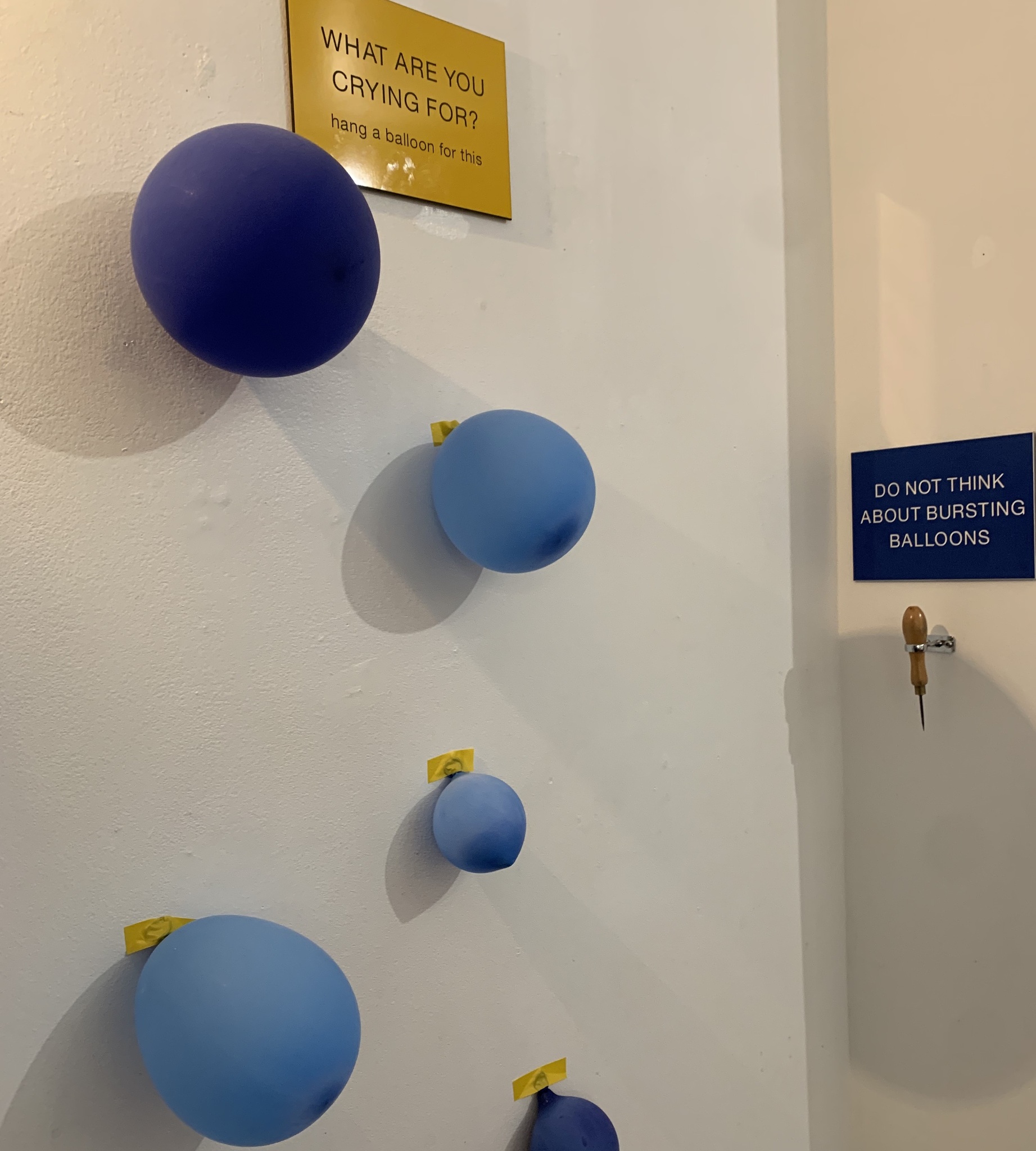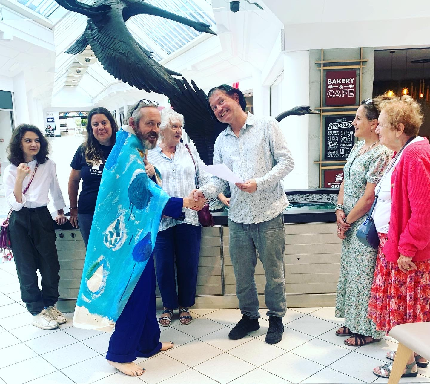 The Cloak of Longing (Tears of Narcissus) has been involved in conference keynote, public and university pastoral occasions. At the heart of my research practice is a sense that I must act to liberate creative capacities via a sense of intuitive material vitality. Matter flow is a characteristic of a cosmos of nonhuman agency and attunement to this is potentially occluded by a need to have a pregiven sense of the causal concepts or therefore-ness. I will have a felt intensity around making a particular artifact and from this a performative processual understanding emerges. In the case of the Cloak of Longing it was painting tears in various shades of blue to performatively disprove Humes' proposal that colour could be genreated in the decontextualised data of the brain.
