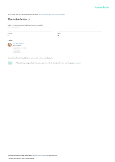 Rekommenderar er även att titta på Runa Hestad Jenssens paper "The Voice Lessons", som ger en alternativ bild på hur lärande om röst kan se ut. (Klicka på bilden här intill: