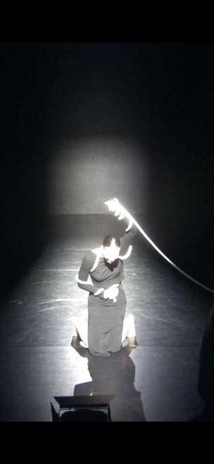 - I tried this time to go more into myself by starting from within. In stead of with my previous work going from the outside, visual inspirations, seeing what I already have to work from. This allowed me to start from an emotional point, to dive into the research deeper and be more playful with whatever came out. I also then could see that setting material to the fullest doesn't help me, so I translated this playfulness into my structure by using improvisation as a guide throughout the piece.