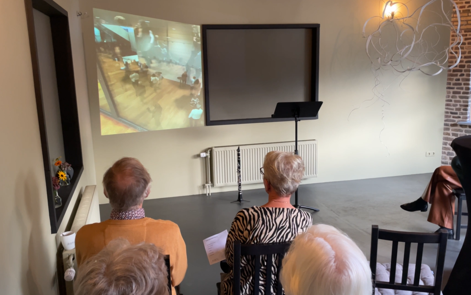 A few months later I decided to make the work longer so that people could come more into the atmosphere and stay there for a while. I extended the work by adding some musical and visual elements. The musical lines that I play on my clarinet are in conversation with the other sounds that can be heard.