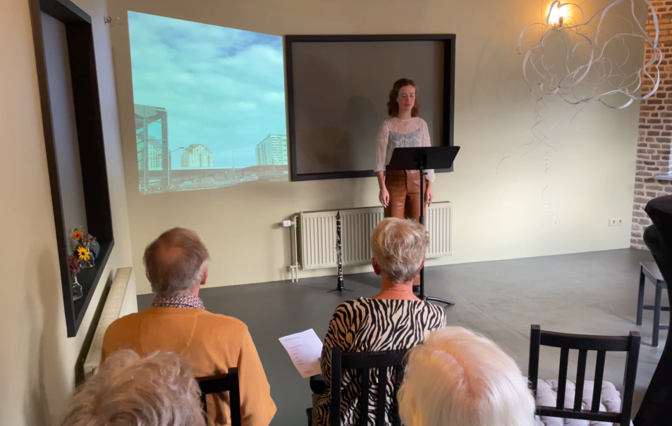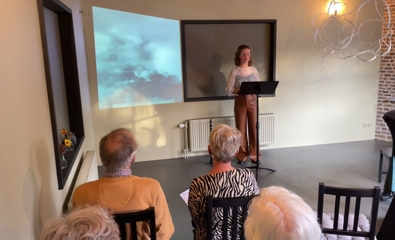 Performing Stilstaan in de wolken in Studio Loos on the 12th of February was a special, beautiful and memorable moment to me. It felt good and nice. I was in a fine flow and the performance felt like a whole with fine transitions between the works. Because I recited the texts by heart it could make more contact with the audience and that felt good. Afterwards I had a conversation with people from the audience and people could leave a comment in a book if they wanted to. A few reactions: