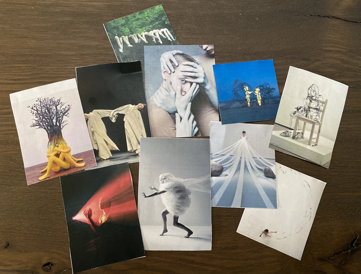The collages are about; Seeing. Not seeing. Eyes covered. Chaos. Connection. Feeling. Distance. Together. Alone. Stuck. Free. It also fits with the following text I wrote about seeing: