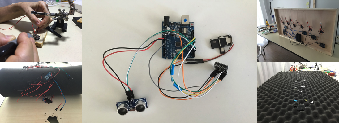 Los paneles se componen de altavoces dispuestos de manera organizada sobre un soporte de espuma acústica fonoabsorbente. Se escuchan paisajes sonoros a modo de cartografías que inciden en la diversidad sonora propia de estos dispositivos, accionados por sensores conectados a sistemas electrónicos de reproducción.