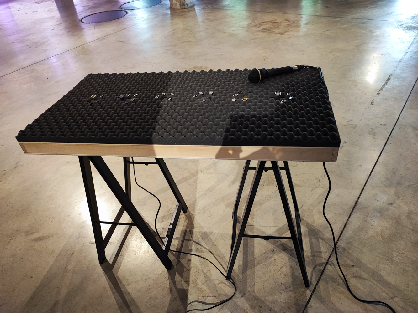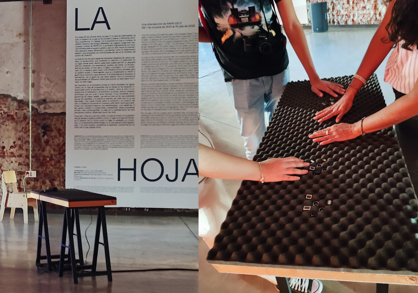 Se compone de un panel acústico 100 x 50 centímetros, sobre caballetes de madera. En esta ocasión se cambia el formato de la pieza a modo de mesa sonora. Se presta a la observación de los altavoces y a la tactilidad de la espuma fonoabsorbente, desplazando la acción de escucha a las manos y, con ello, a la percepción de las vibraciones sonoras. Se escuchan seis canales con sonidos de Valencia, Linz y Madrid, además de voces que responden a las preguntas de las entrevistas de la investigación.