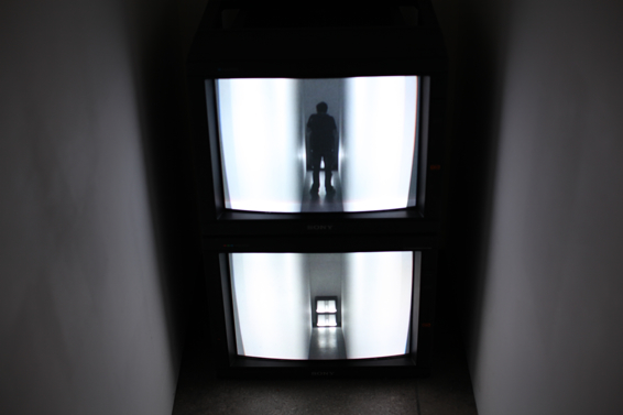 The metonymic proximity between the “living image” and the “dead image” of the empty corridor displayed on the installation´s second monitor seems to draw the experience into an existential register; here one not only sees oneself as walking, but as walking away; one is an ever-present body observing itself on its way out of “the living picture”, towards death and absence.13